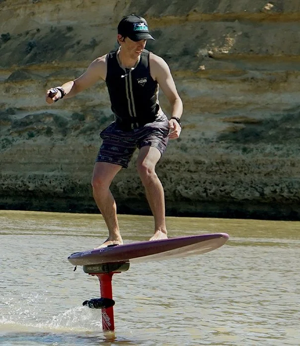 Tow foil demo lesson. approx 1hour on the water. flat water tow foiling lesson behind a jet ski. 1 to 1 tuition.